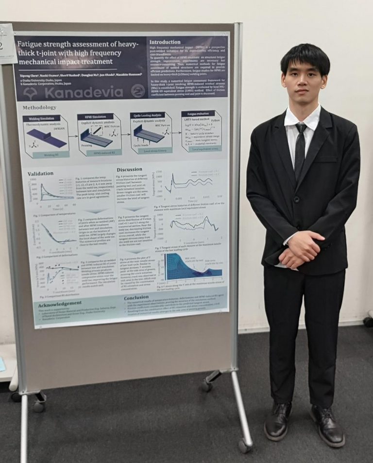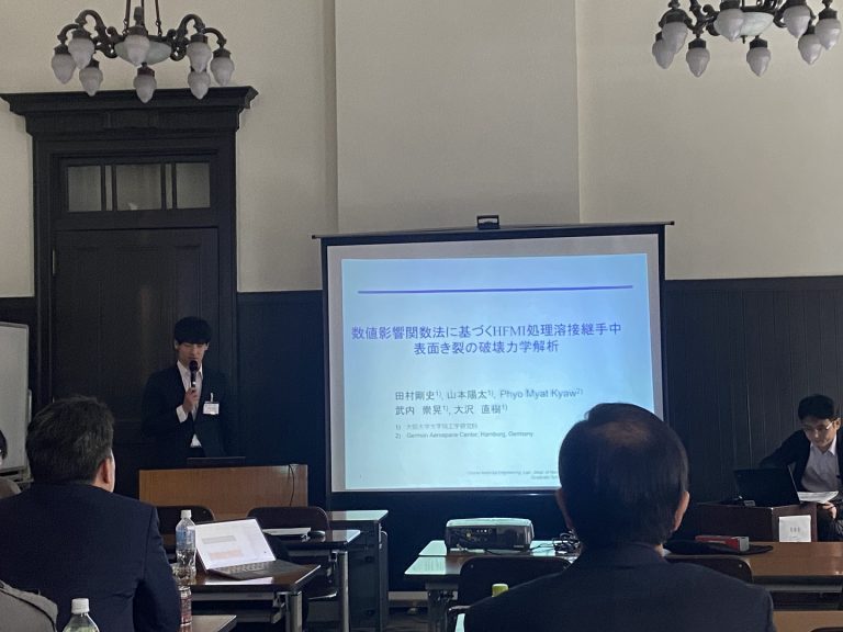 2024年4月18日(木)に教員2名と博士前期課程の学生3名でJMU呉事業所に見学に行きました.大型コンテナ船の構造モニタリングで使用されるセンサーの施工やシステムの構成について説明を受け,実船計測データの分析を担当する学生にとって非常に貴重な機会となりました.